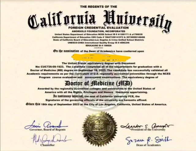 그런데 Califonia University FCE라는 외국에서 받은 학위를 검증해주는 에이전트가 미국에 있다고합니다. 그래서 이 상원의원으로 당선되신 분께서 이곳에 의로해서 박사학위를 인증 받았다고 합니다.